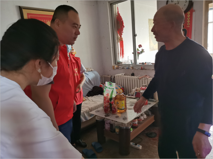 在晨光社區(qū),看望了87歲的孤寡老人程淑惠??赐死詈眨ň癜l(fā)育遲緩伴發(fā)精神障礙)和王秀先(精神殘疾)等3戶困難居民。